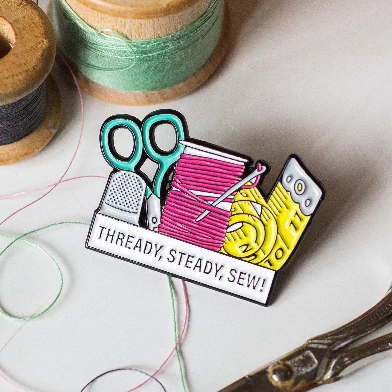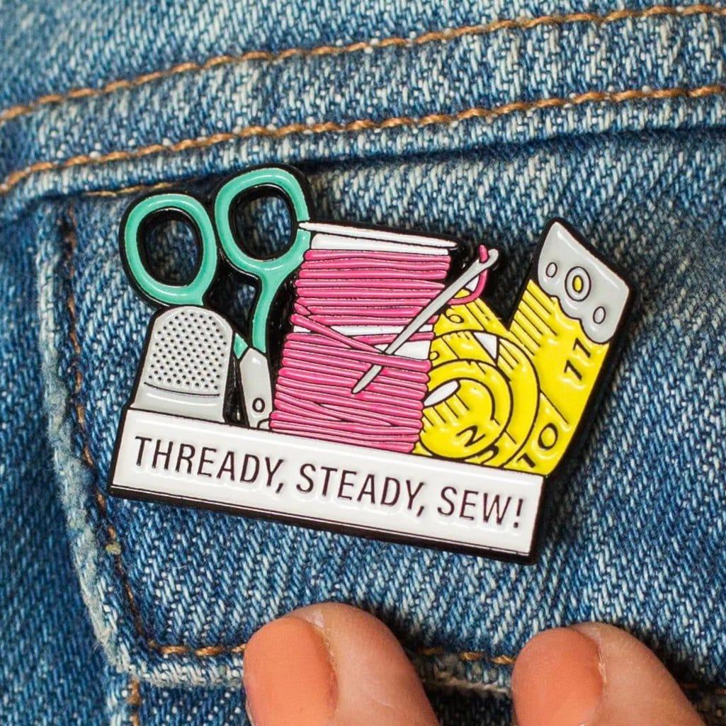 'Thready, Steady, Sew!' Enamel Pin Badge