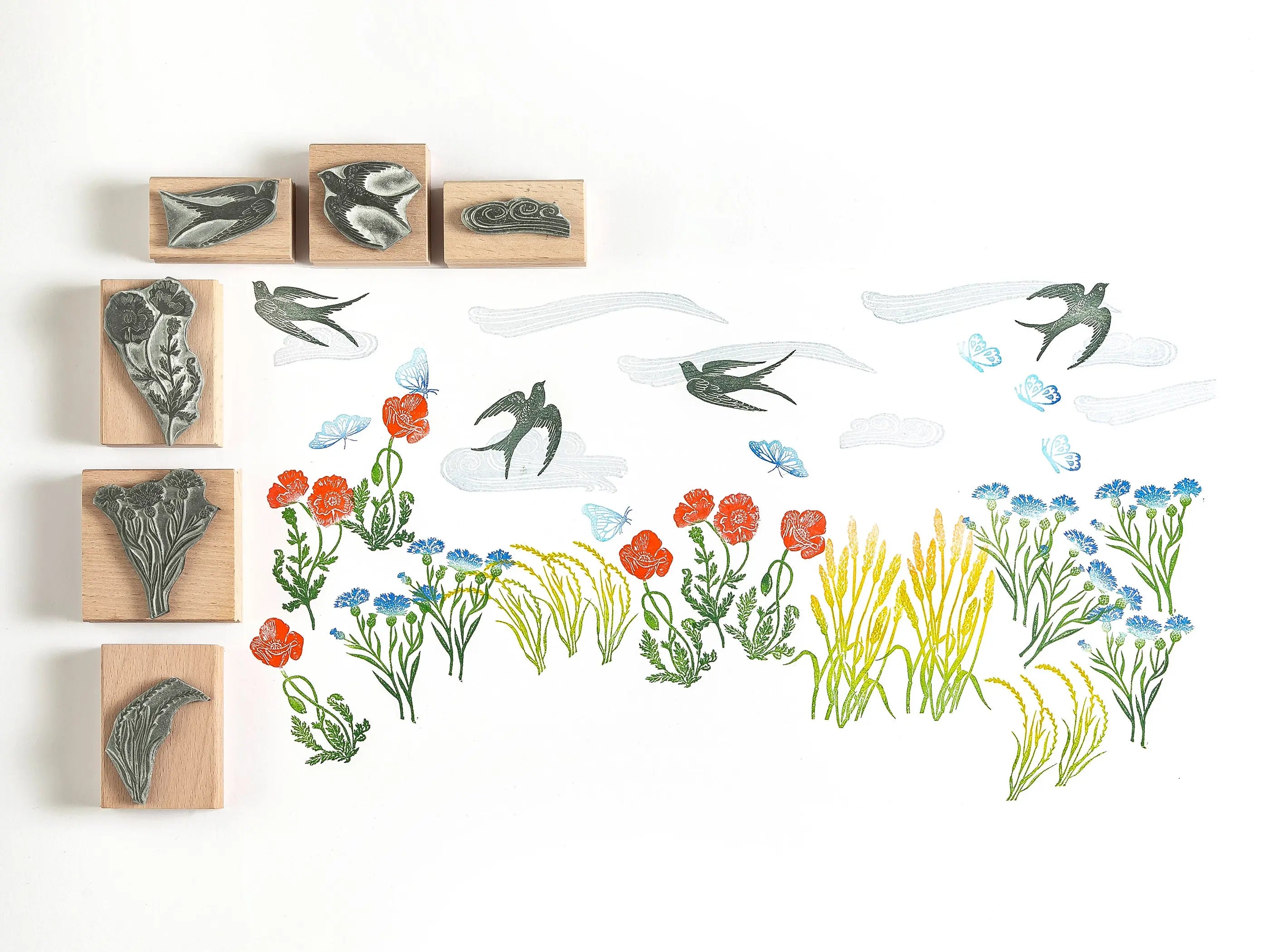 Summer Meadow Rubber Stamp Collection, Flower Stamps for card making