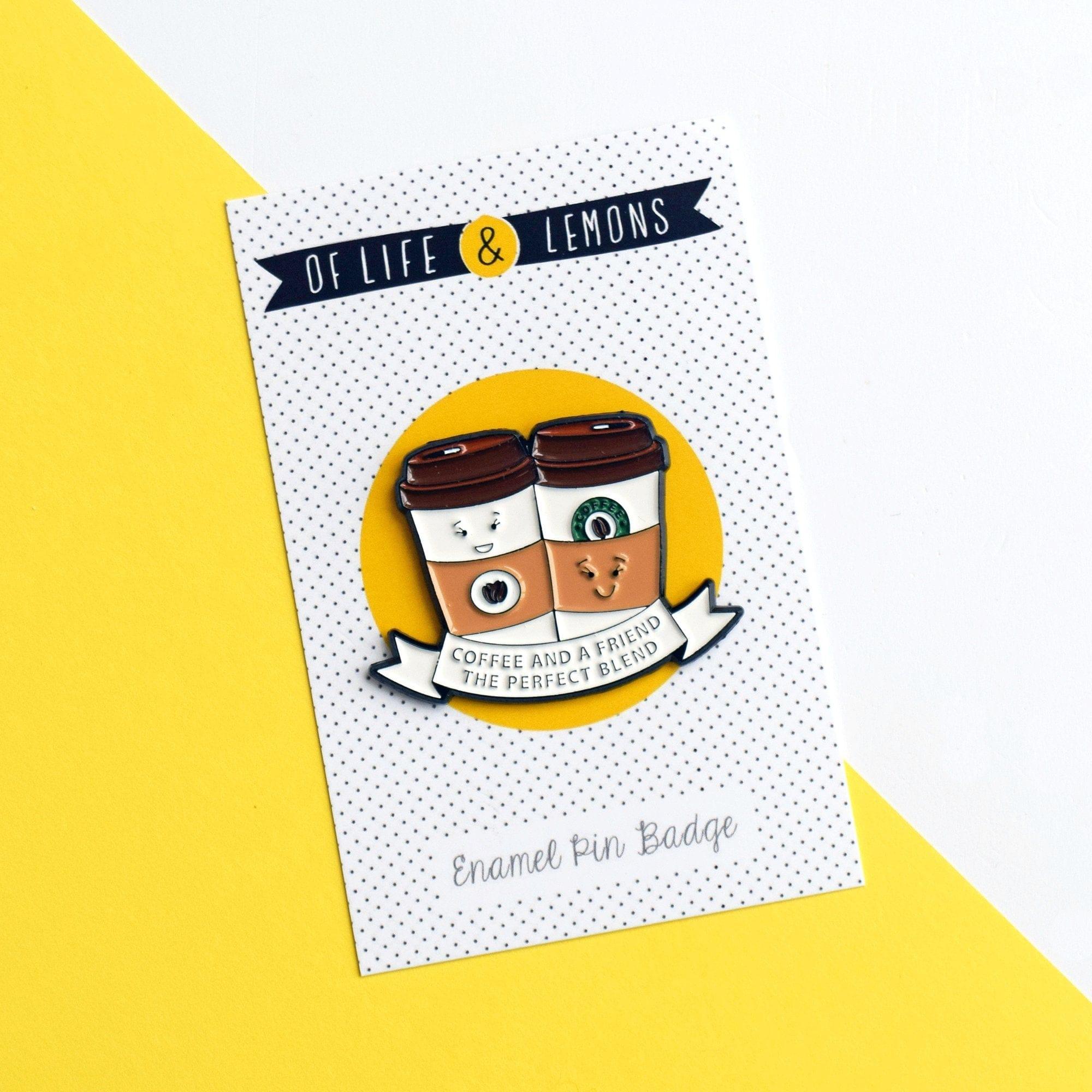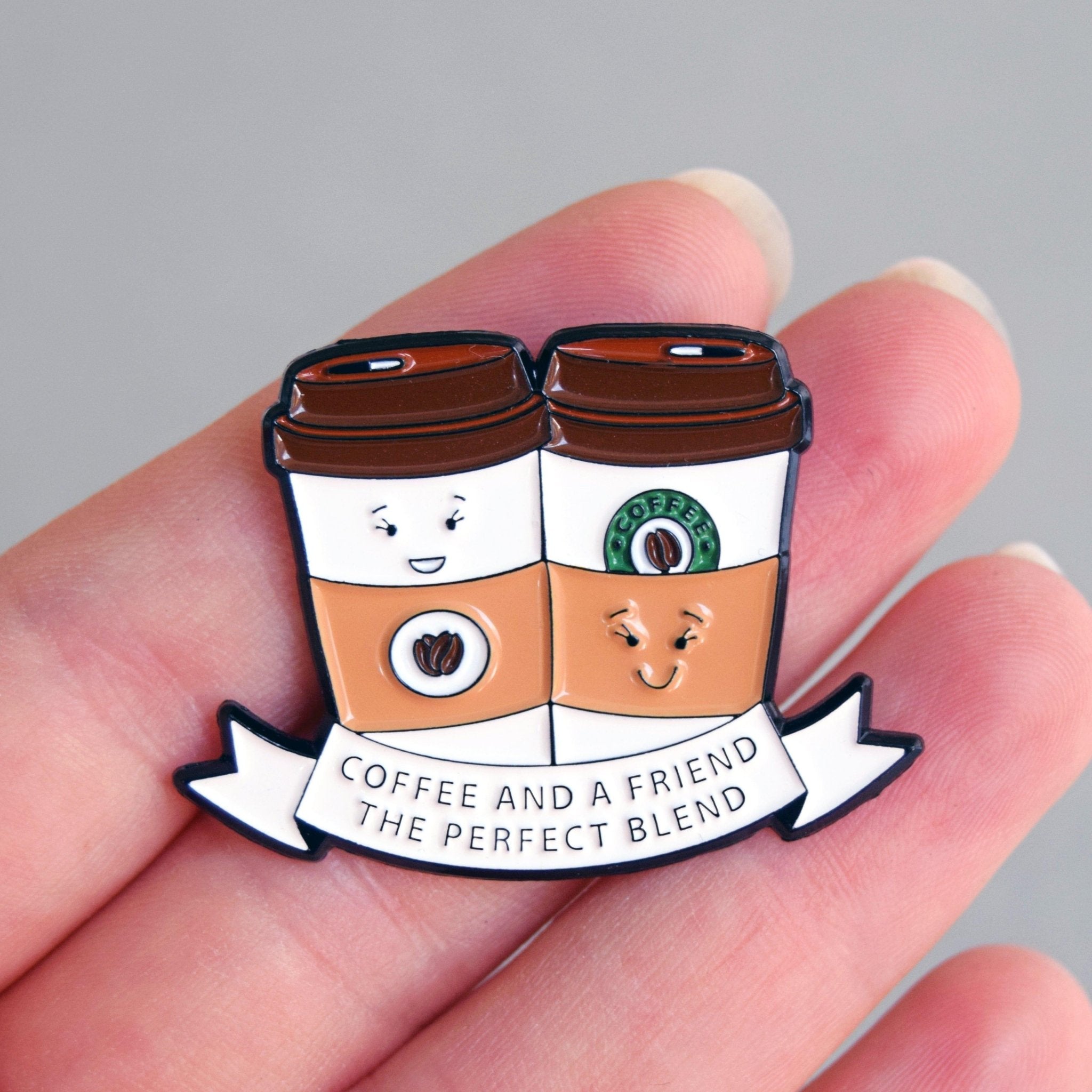 The pin badge also comes with a stylish backing card, making it the perfect gift for your best friend, sister, or anyone else who loves their coffee as much as they love their friends.