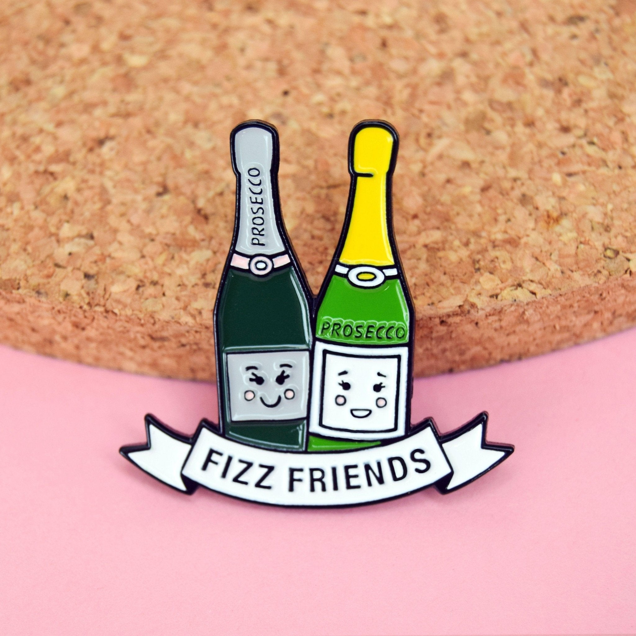 This cute Prosecco pin badge is the perfect gift for your best friend, especially if they are your fizz loving partner in crime! We all have a friend who we like to put the world to rights with over a bottle of Prosecco and this funny Prosecco enamel pin celebrates them. Featuring adorable illustrations of two bottles of Prosecco and the phrase 'Fizz Friends', this pin badge gift is sure to raise laugh from any Prosecco loving friend who receives it!