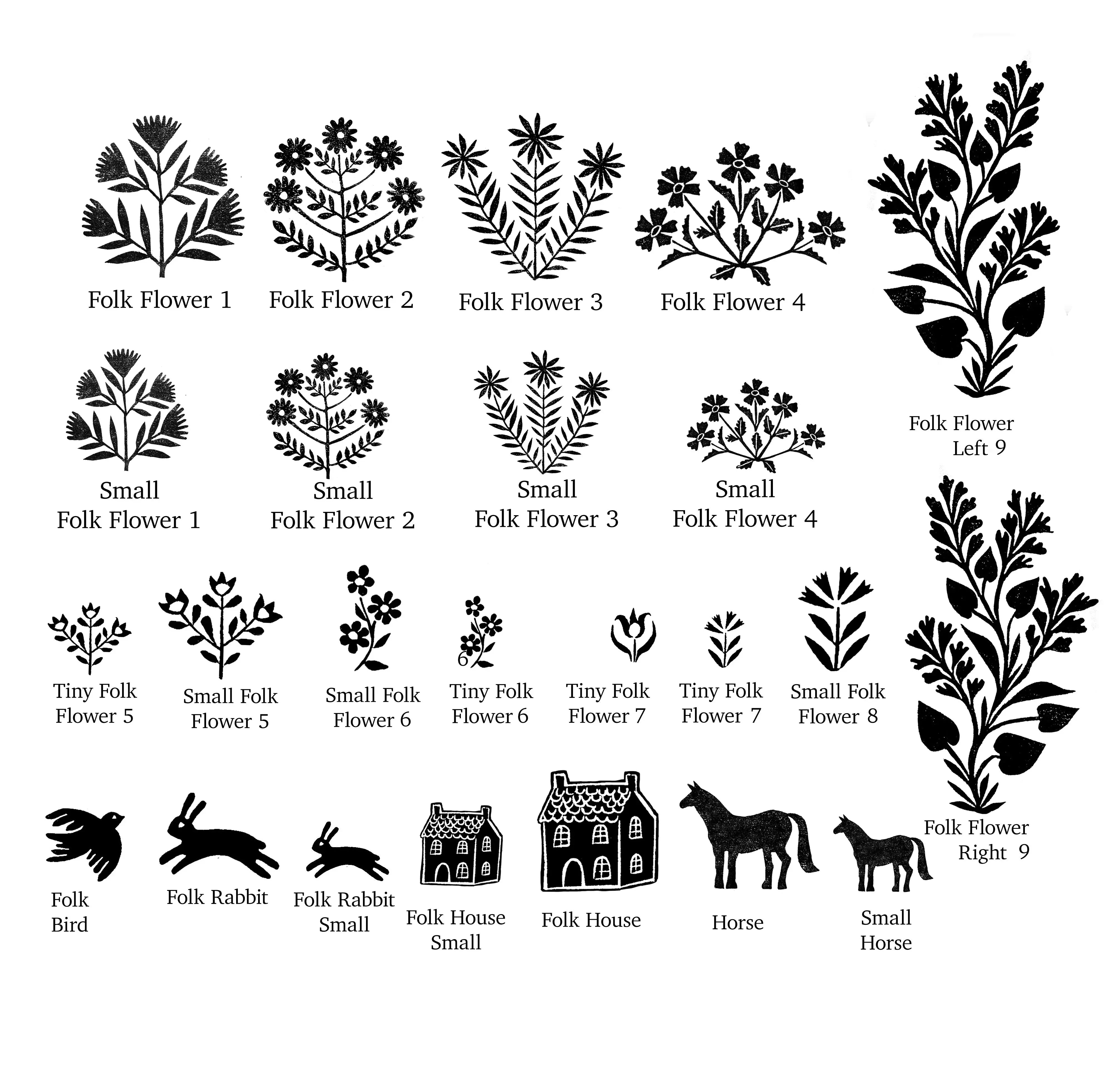 Some Folk Flower Rubber Stamps perfect for making cards, decorating gift wrap and gift tags. These stamps will also work really well for printing on fabric with versa craft ink pads which are also available in my Etsy store. I designed all these stamps using a lino cut technique. The designs are inspired by the simple folk art found on vintage and antique quilt designs of Europe and America. These designs are so fun to stamp with, there is just something about the simple folk pattens that I am sure you will find connects with you as it does with me. I have lots more plans for these stamps with my own creative