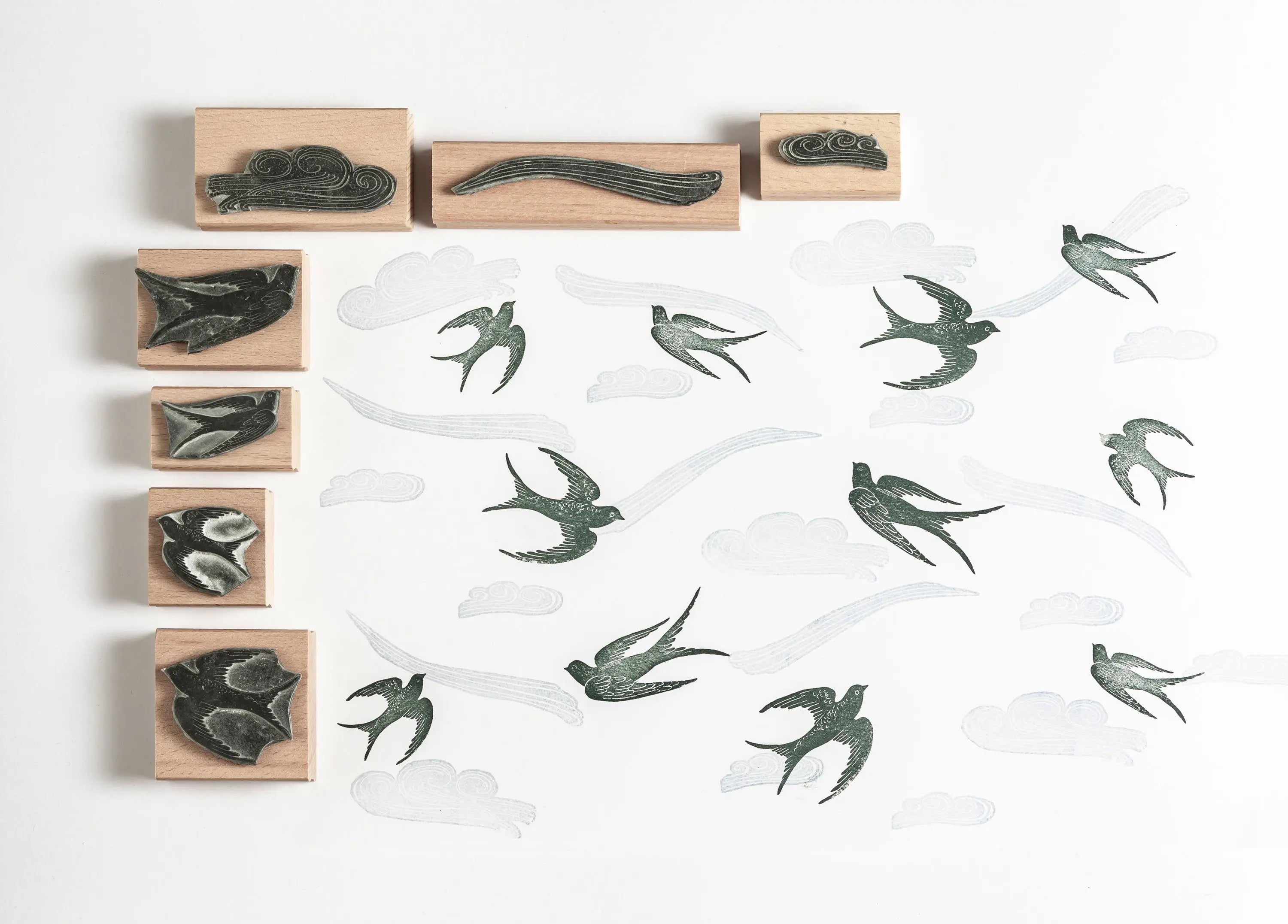They are all being sold separately but are also available as a set in the Medium or small sizes. The sets include all the plant stamps and field mouse. The Swallows and Clouds are also available as a Set of the 2 larger swallows and the cloud and swooch stamps.