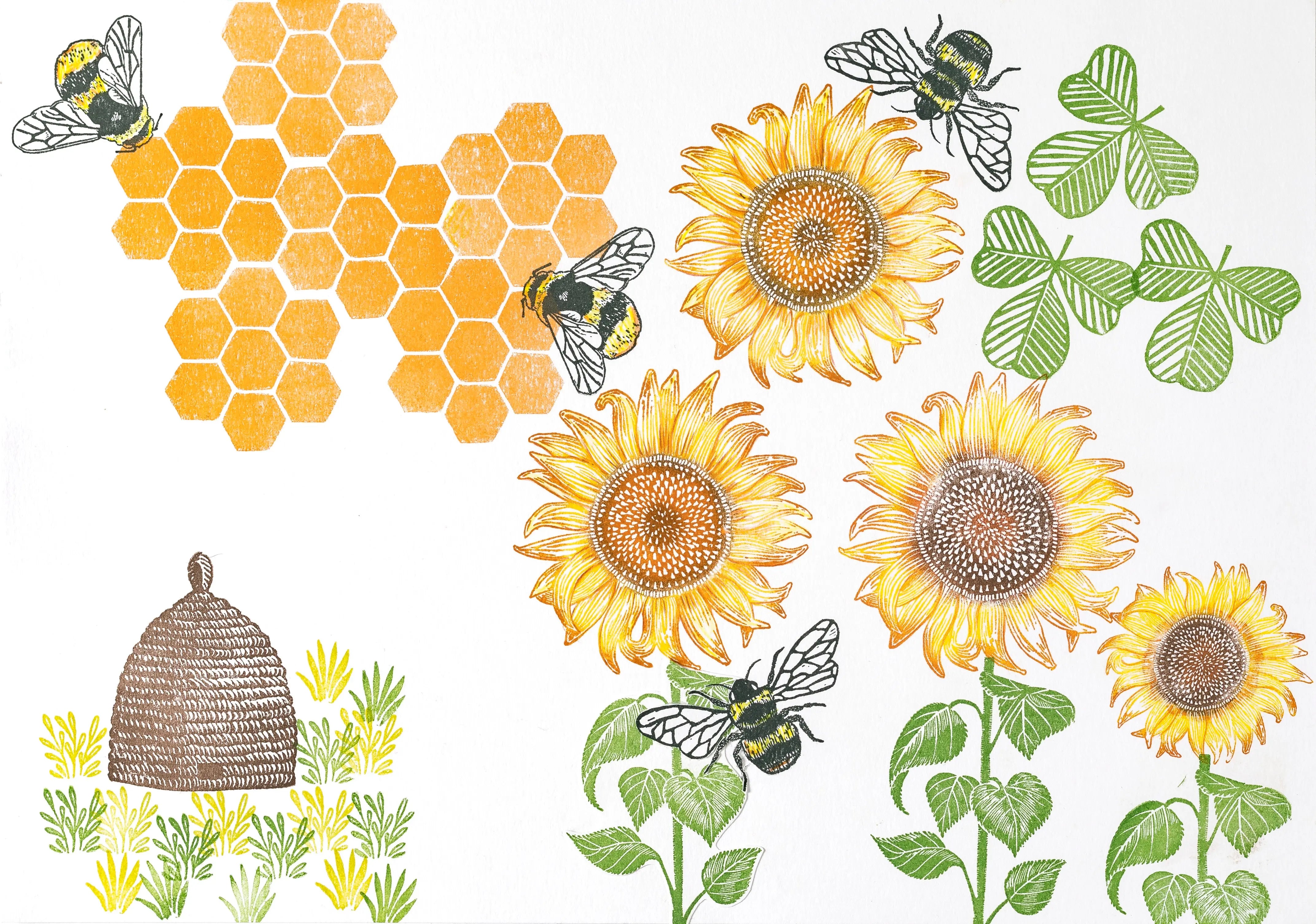 These Sunflower and Bee Rubber Stamps have all been designed using a lino cut, then made into rubber stamps for your summer stamping and card making projects.