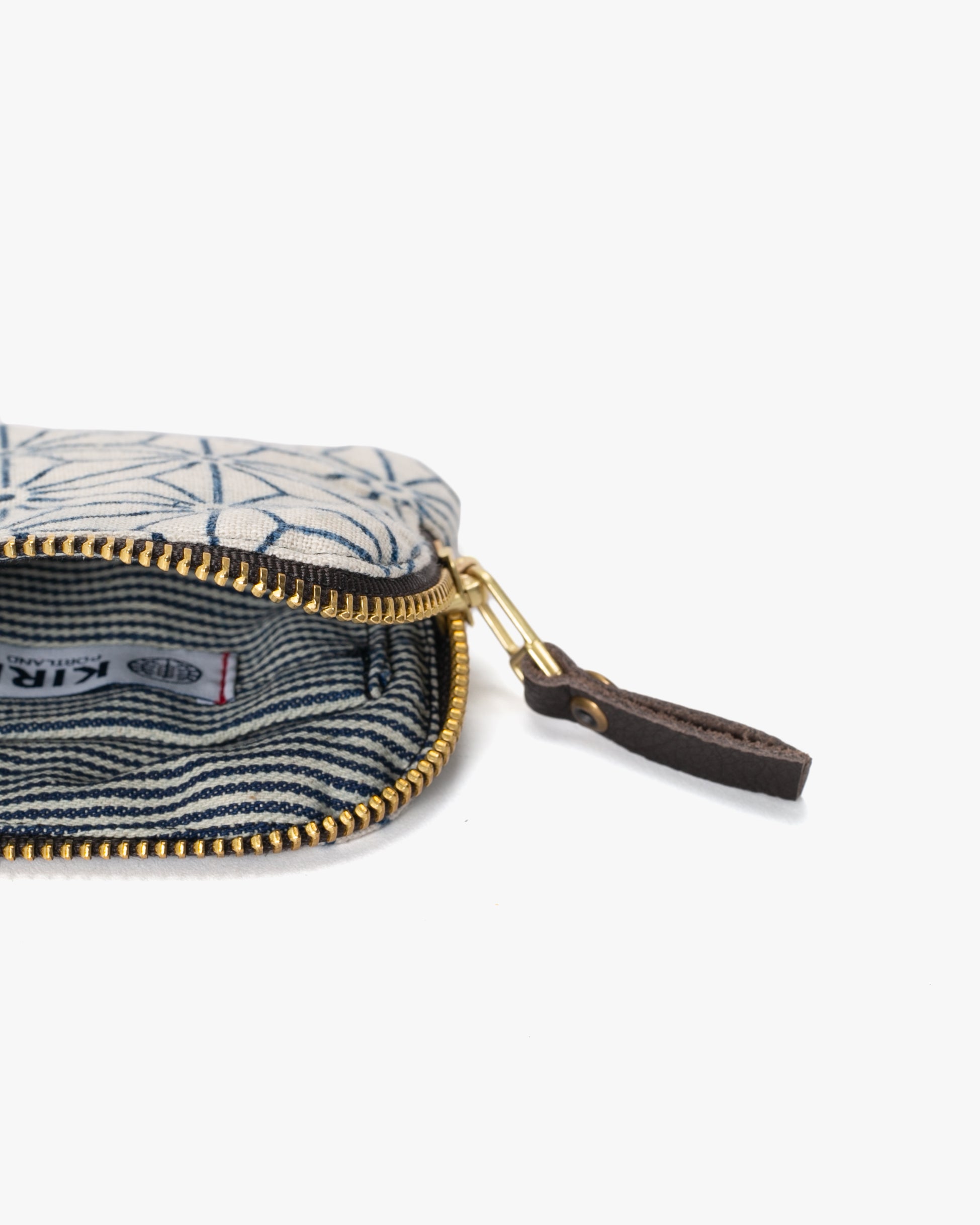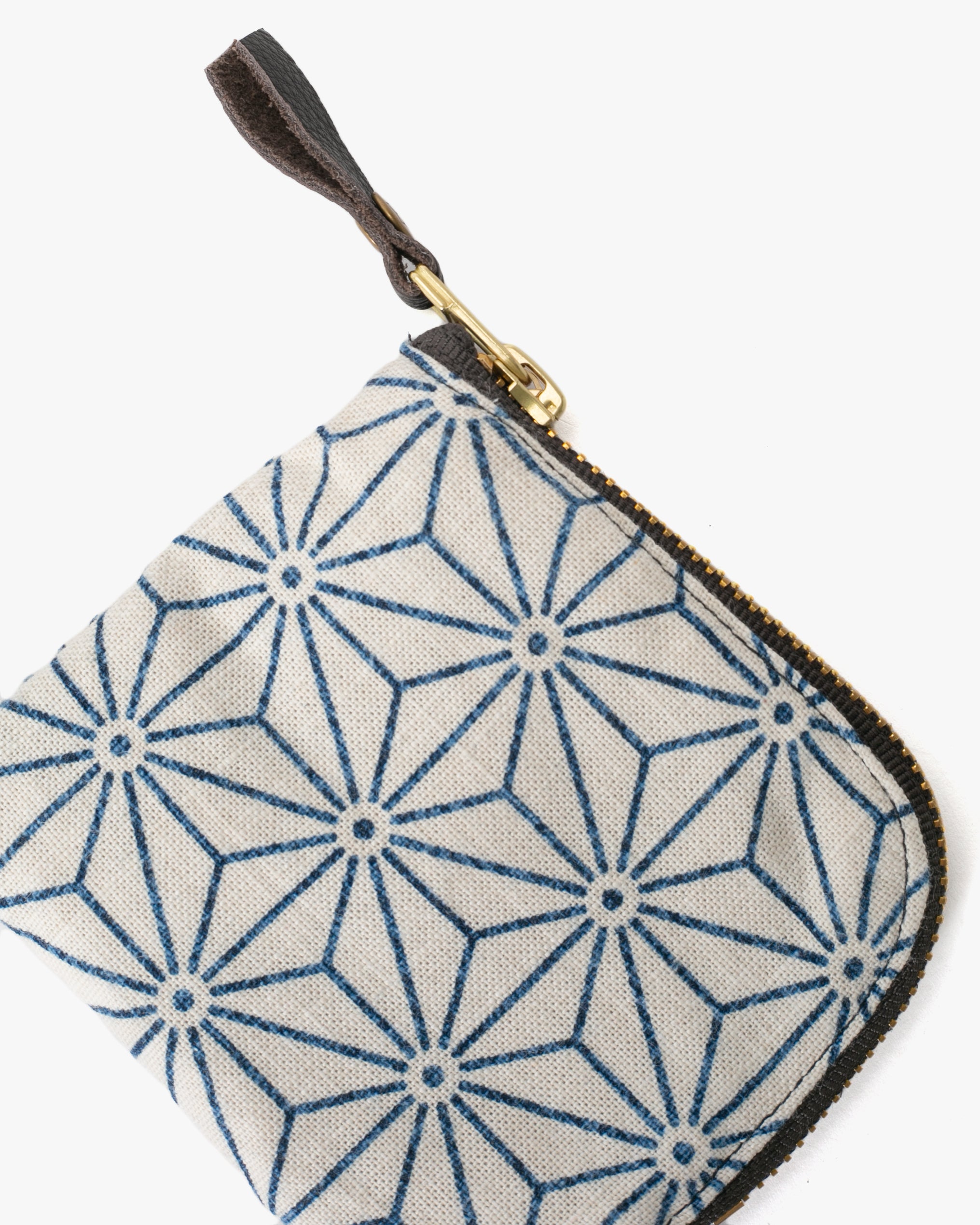 Sashiko stitching was originally done by hand not just for decoration, but also to reinforce fabric. This zipper wallet displays different sashiko patterns with a classic indigo blue base and white, undyed thread.
