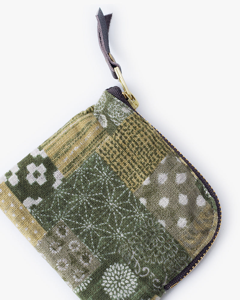 Sashiko stitching was originally done by hand not just for decoration, but also to reinforce fabric. This zipper wallet displays different sashiko patterns with a classic indigo blue base and white, undyed thread.