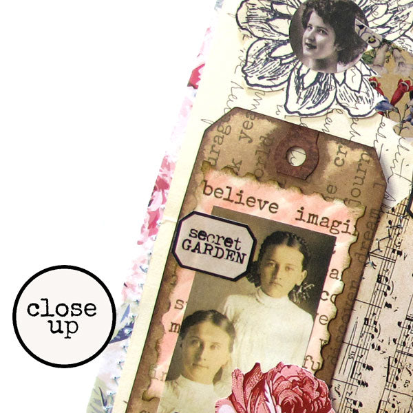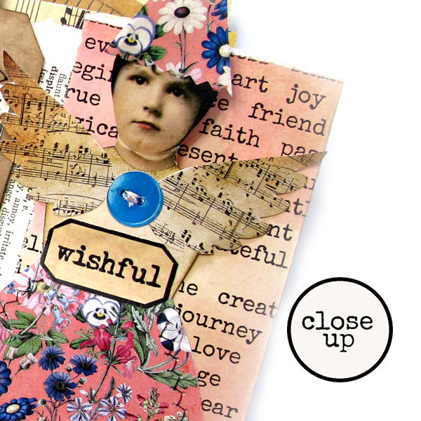 Have some fun making 2 vintage style paper dolls with our Paper Dolls Collage Sheet. The size of the dress form is about 2" x 4-1/2", the skirts are about 2" x 3-3/4", the shoes are about 1-1/2" x 2", and the wings are about 1" x 2".  Label Rubber Stamps are not included on the Collage Sheet.