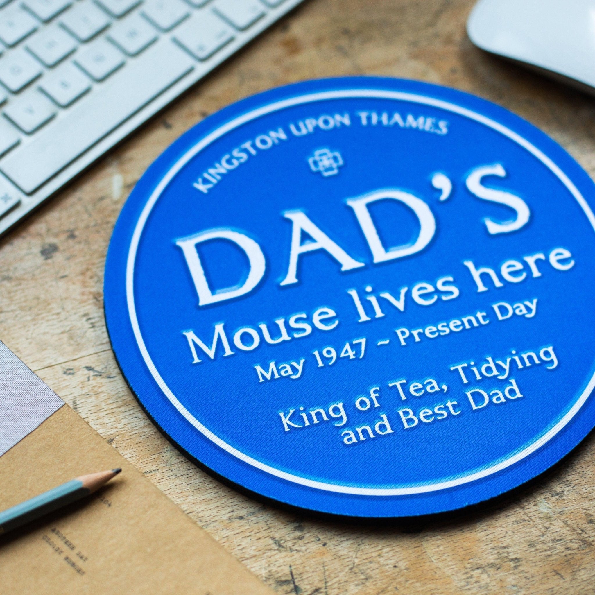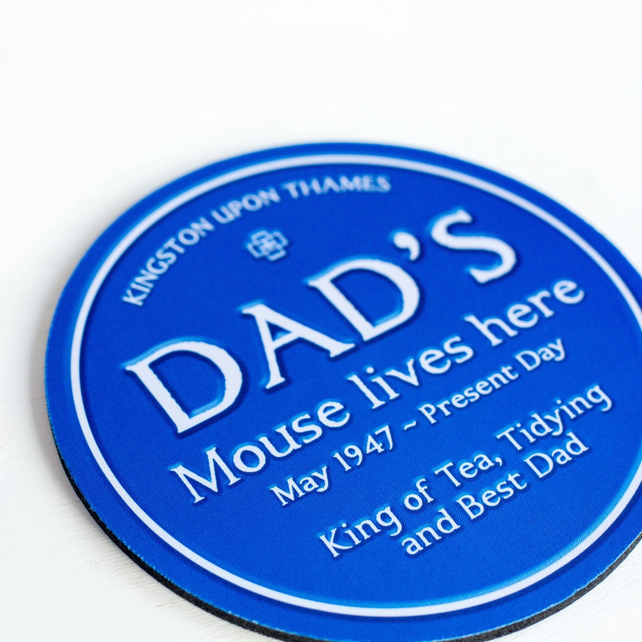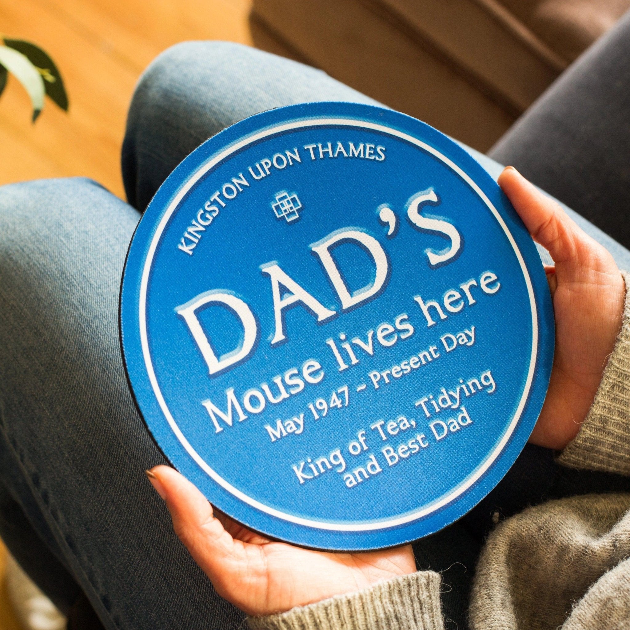 With this mouse mat you can honour your Dad with her very own blue plaque and remind him of his special qualities everytime he sits at his computer! Featuring his location and birth year; the mouse mat states that Dad's mouse 'lives here' and there is room to put a short quote about him and his unique qualities.