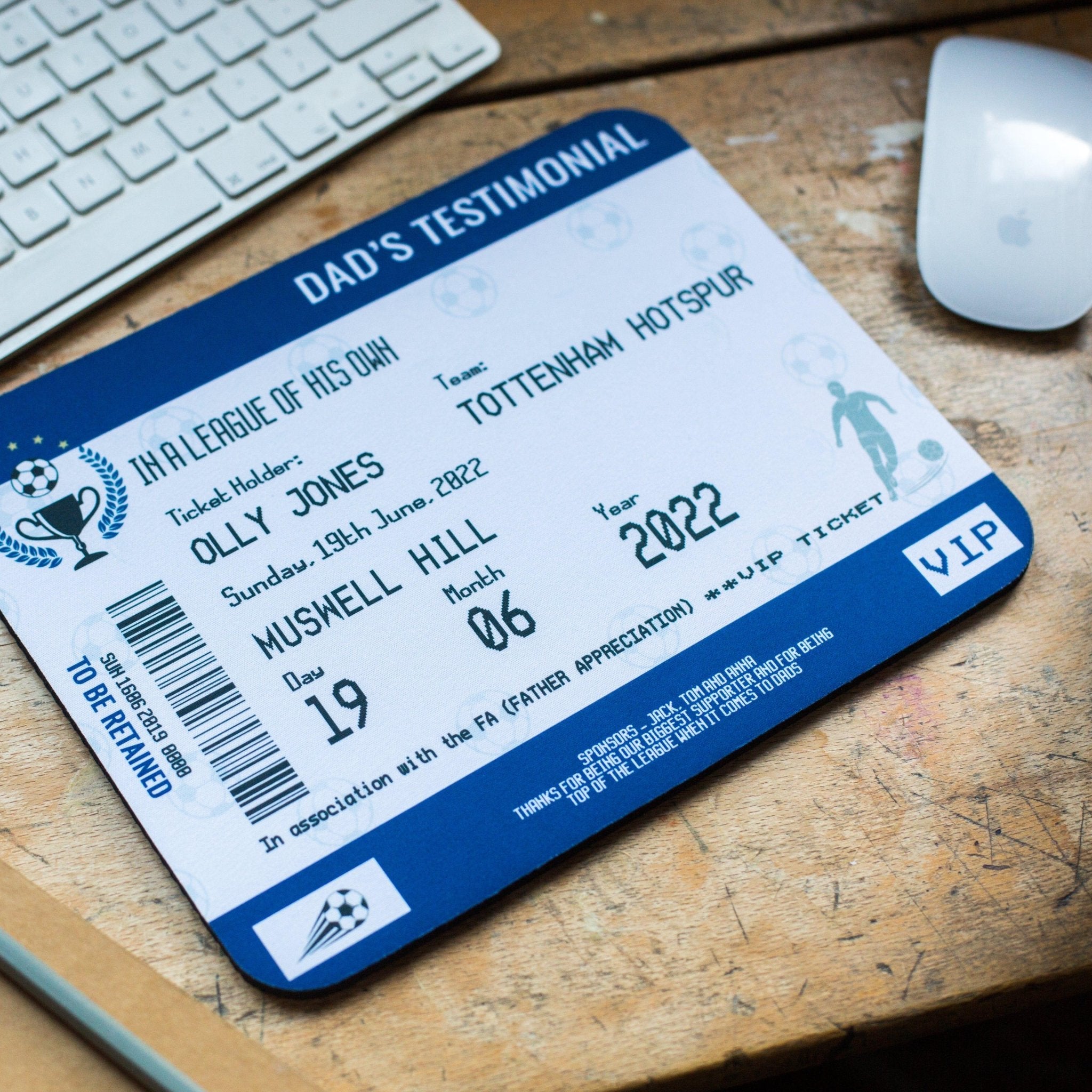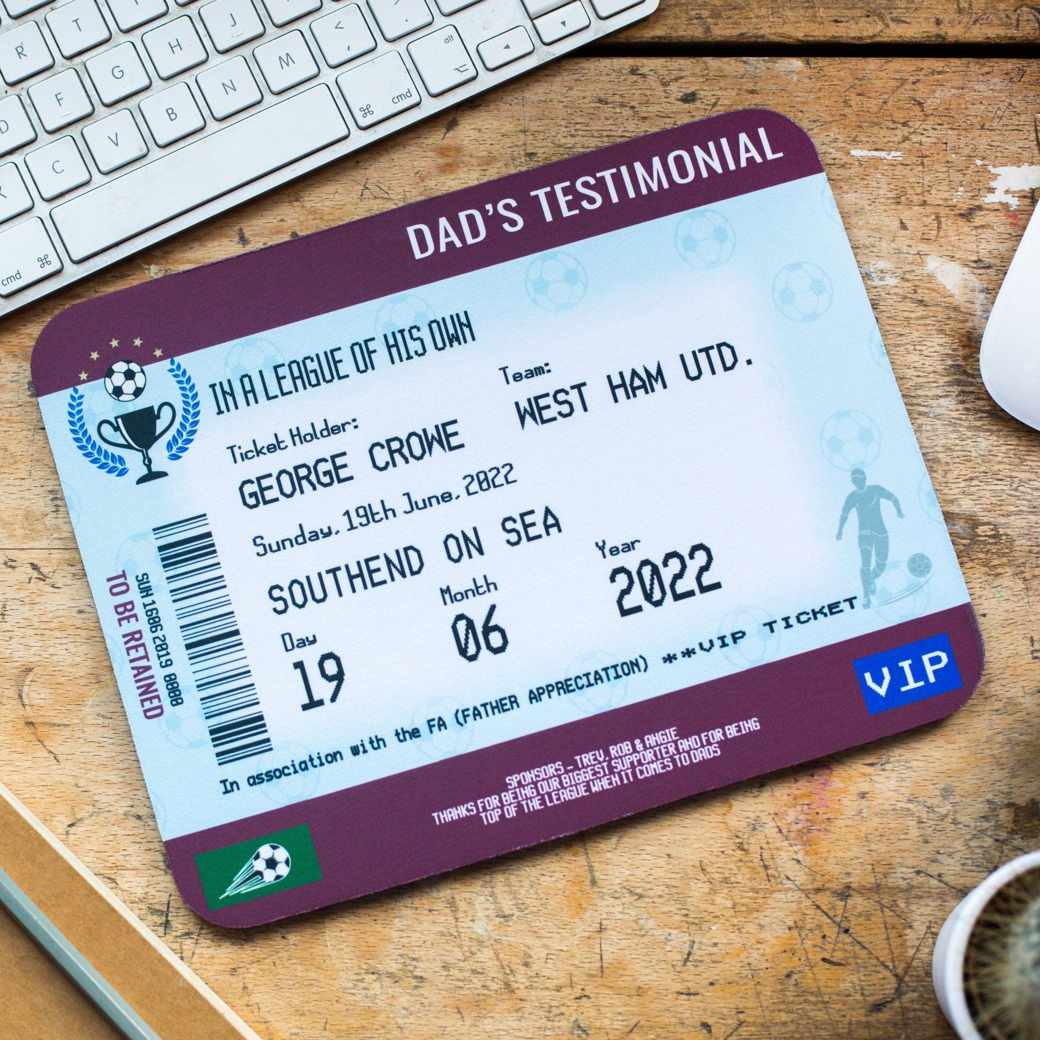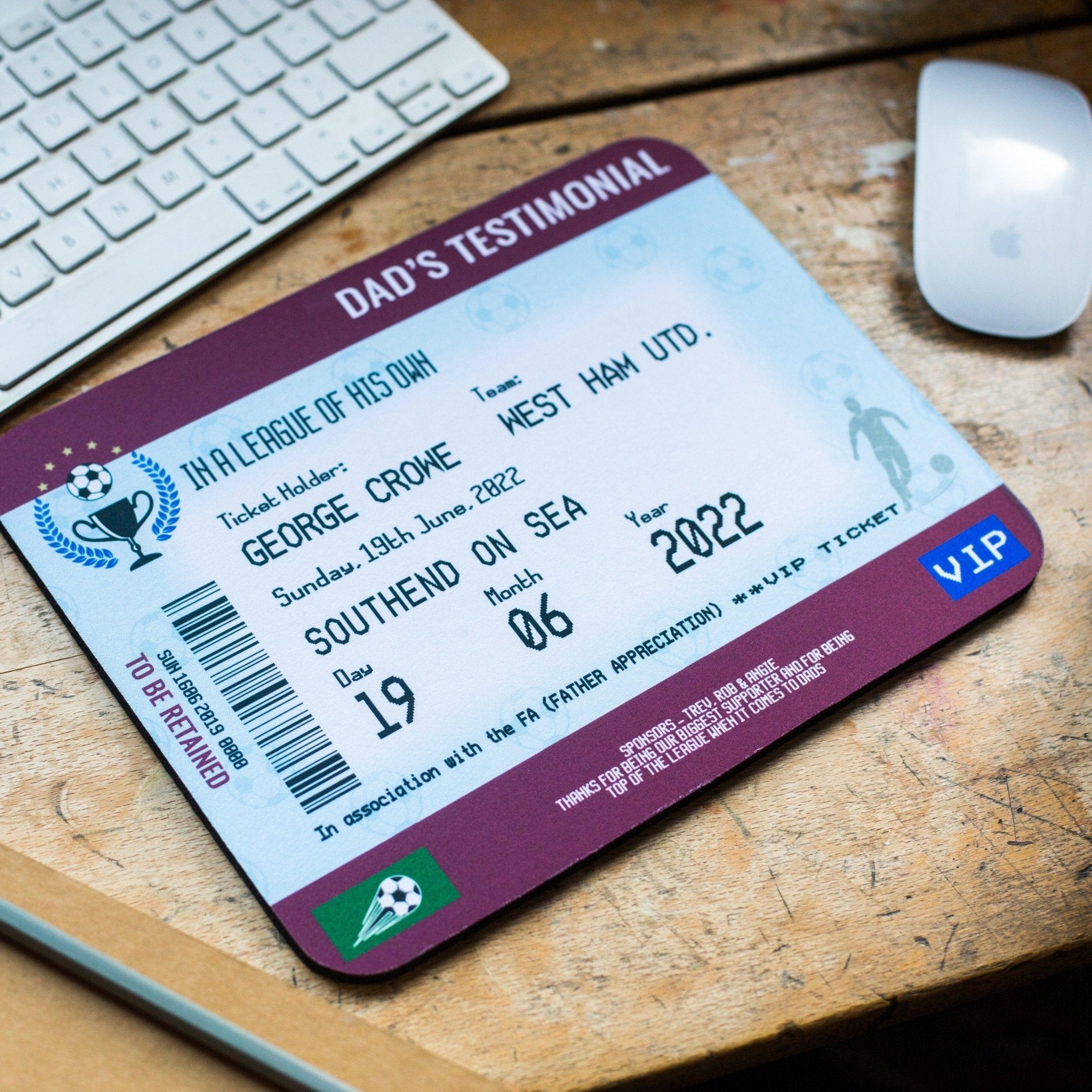 This lovely personalised football ticket mouse mat is an ideal Father's Day gift for a footie mad Dad!