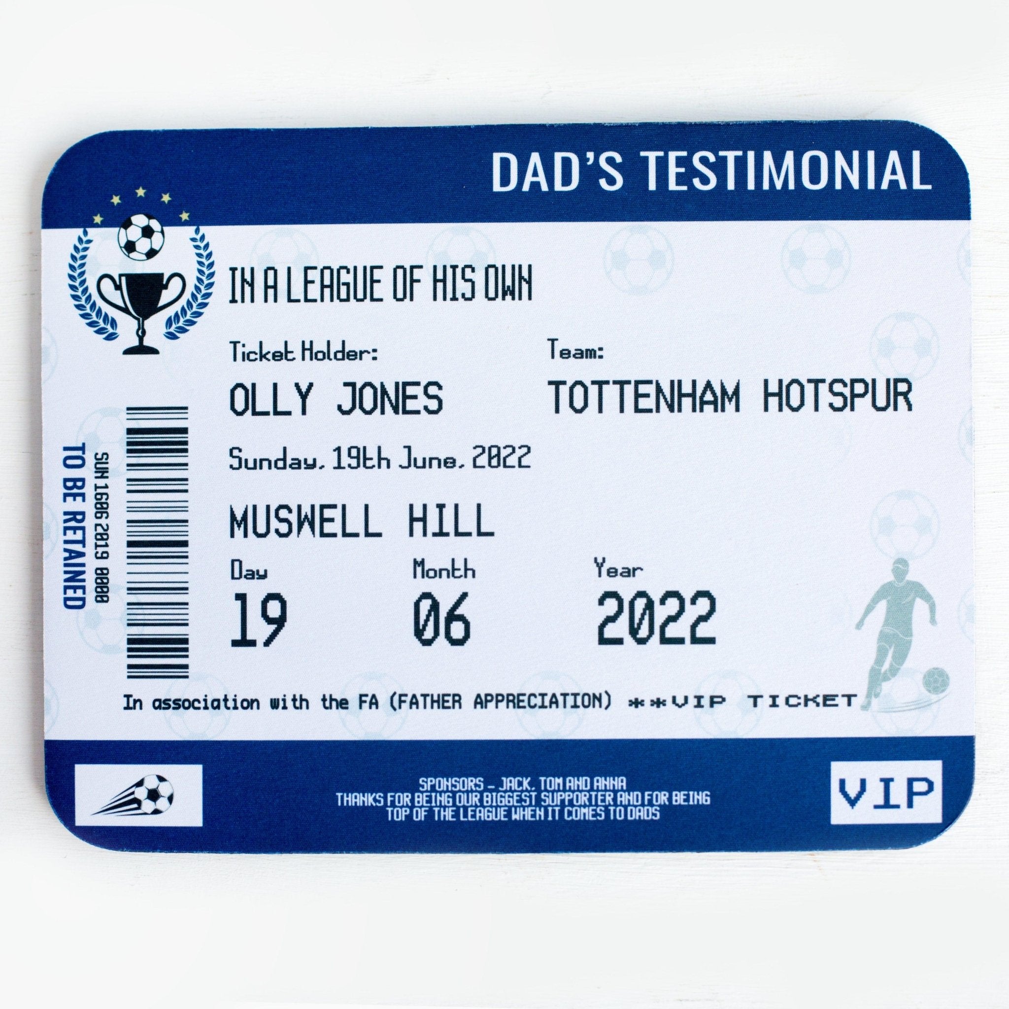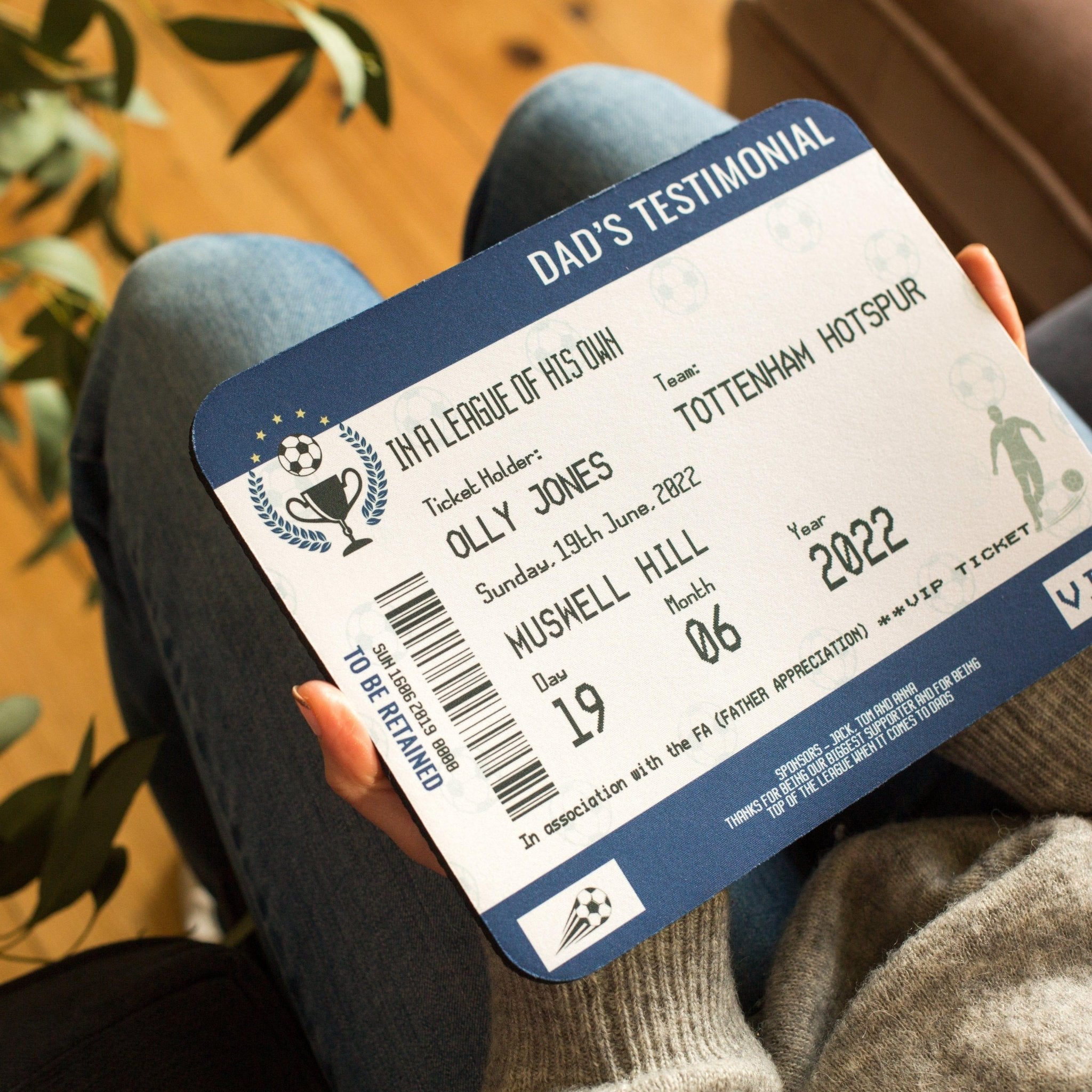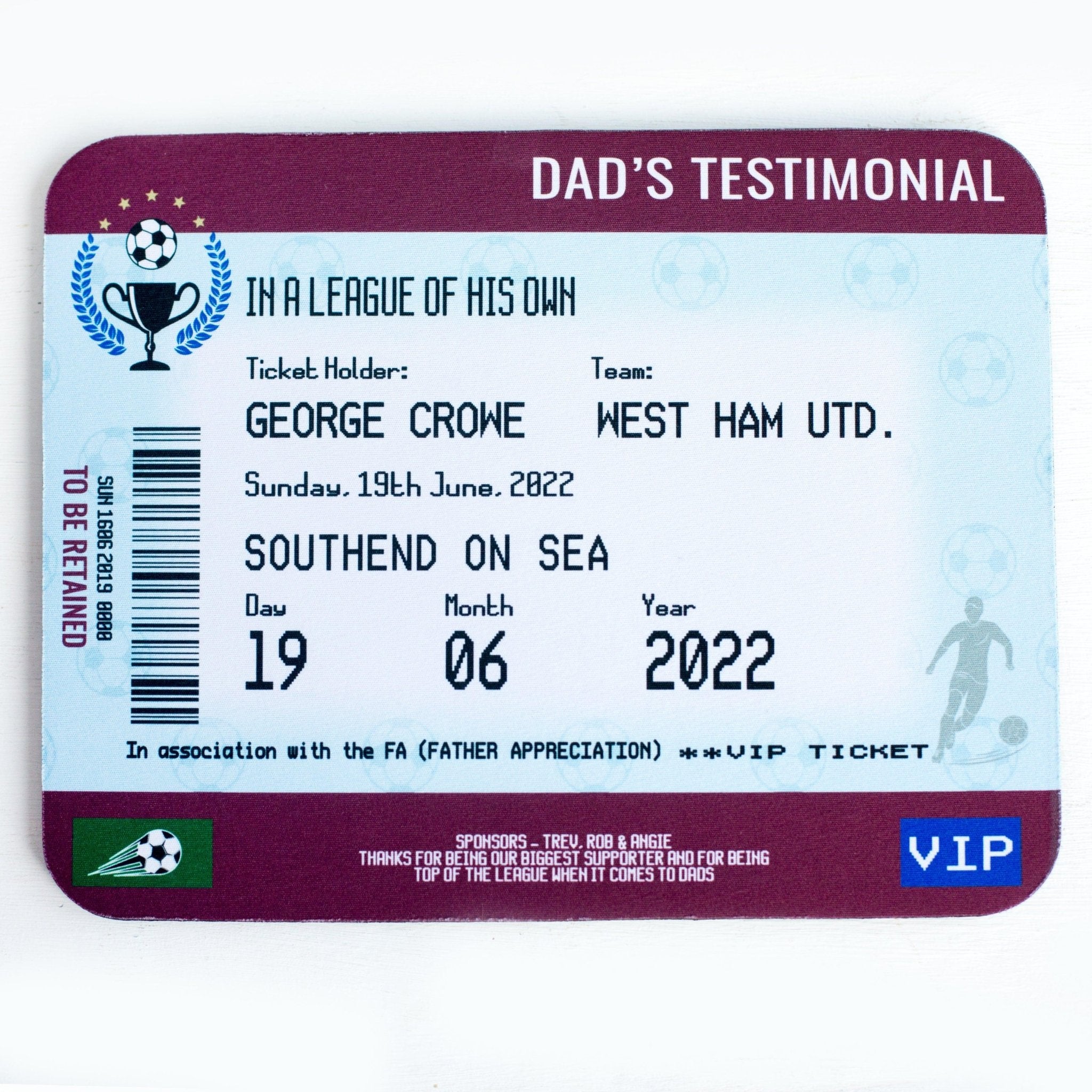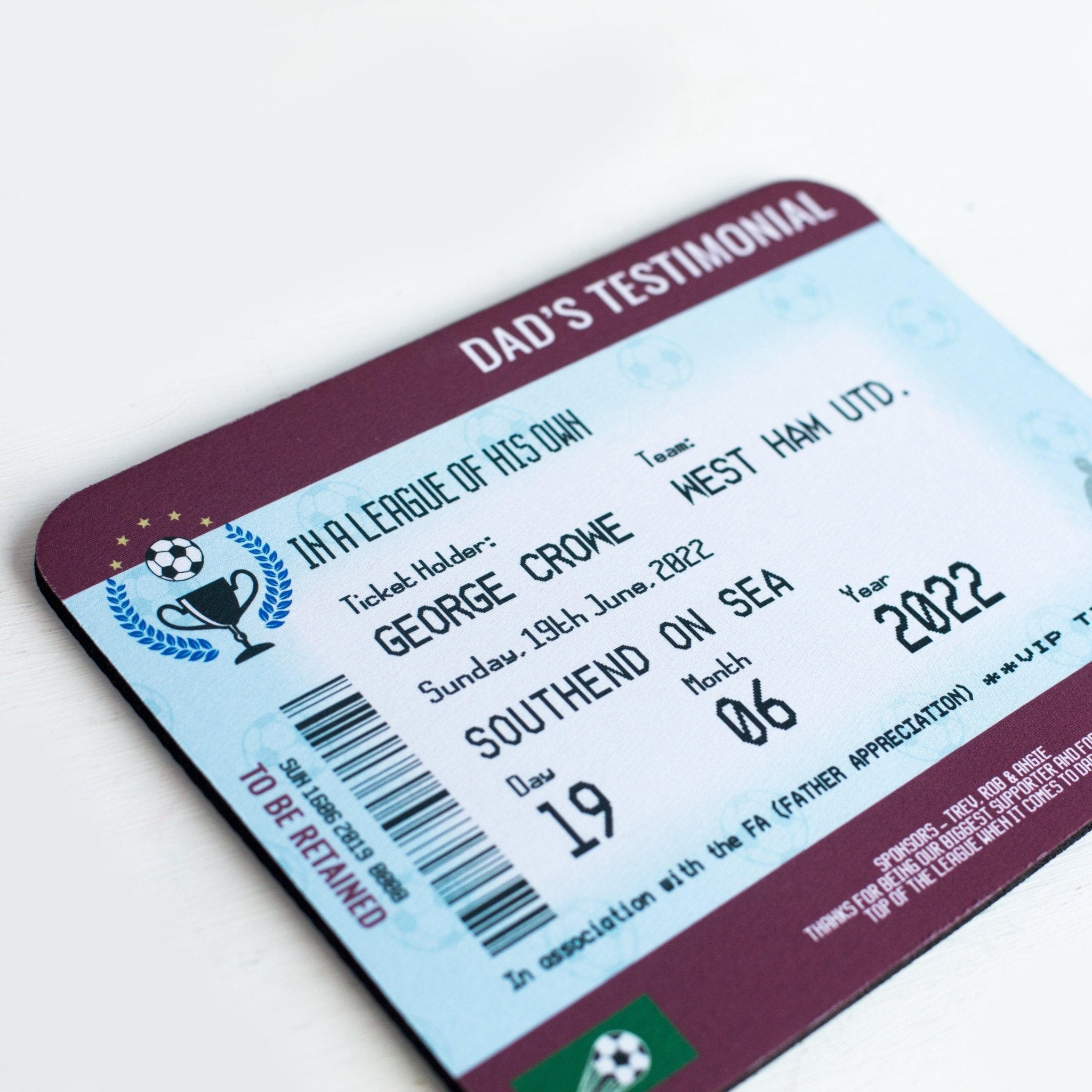 This lovely personalised football ticket mouse mat is an ideal Father's Day gift for a footie mad Dad!