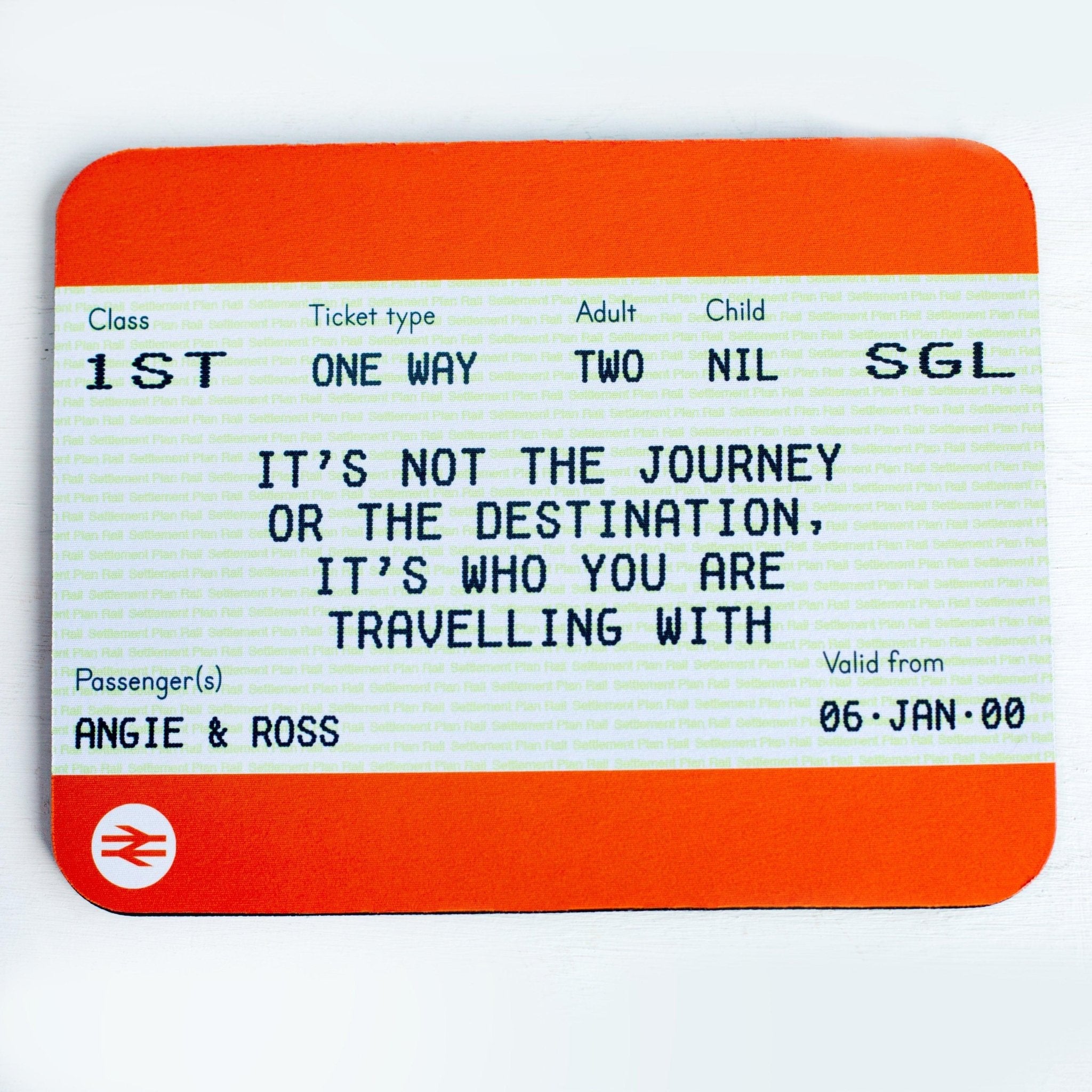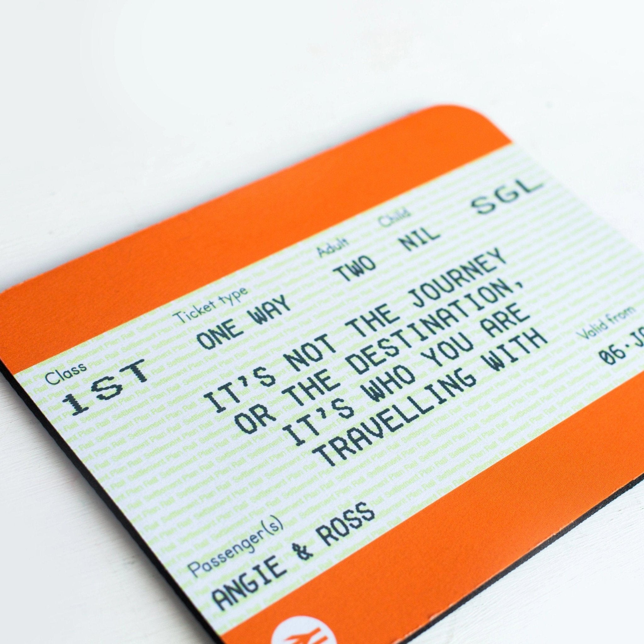 With more and more people working from home these days, there are an awful lot of home offices that need decking out. This brilliant new personalised train ticket mouse mat is an ideal gift for a loved one that doubles up as a useful computer accessory. We have taken the ticket and added a quote that beautifully describes the joy in sharing the journey of life with a special plus one. The addition of personalisation ensures that this print will be warmly received if given as a gift.