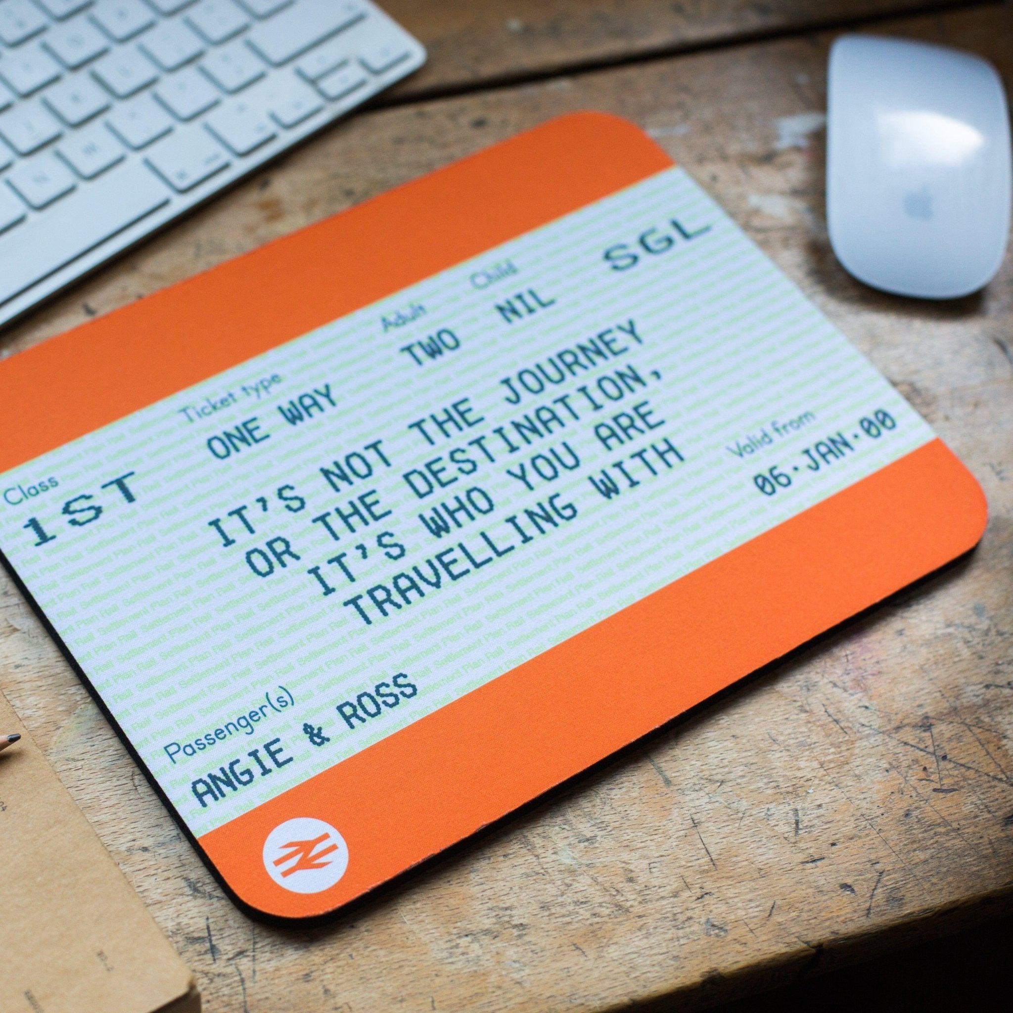 We have taken the instantly recognisable National Rail train ticket and given it a new lease of life as a mouse mat!